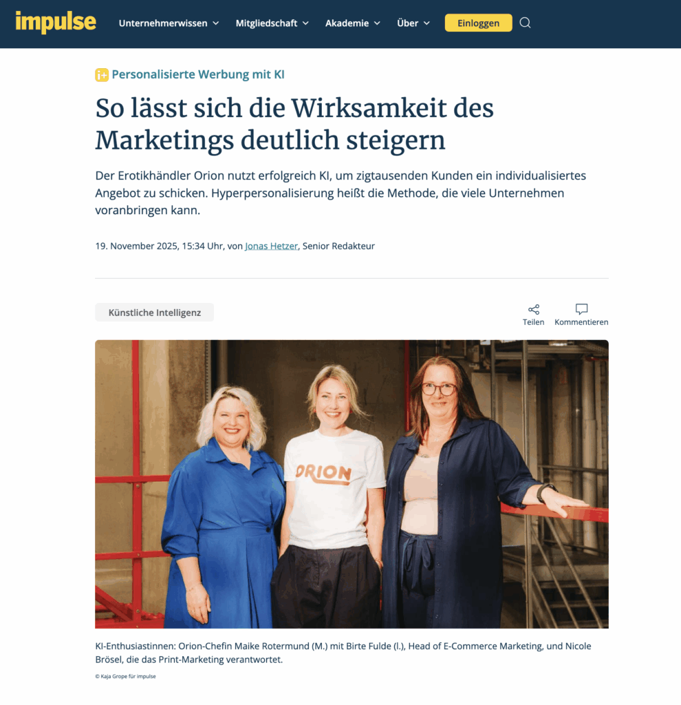 Hyperpersonalisierung bei ORION – das Magazin impulse berichtet
